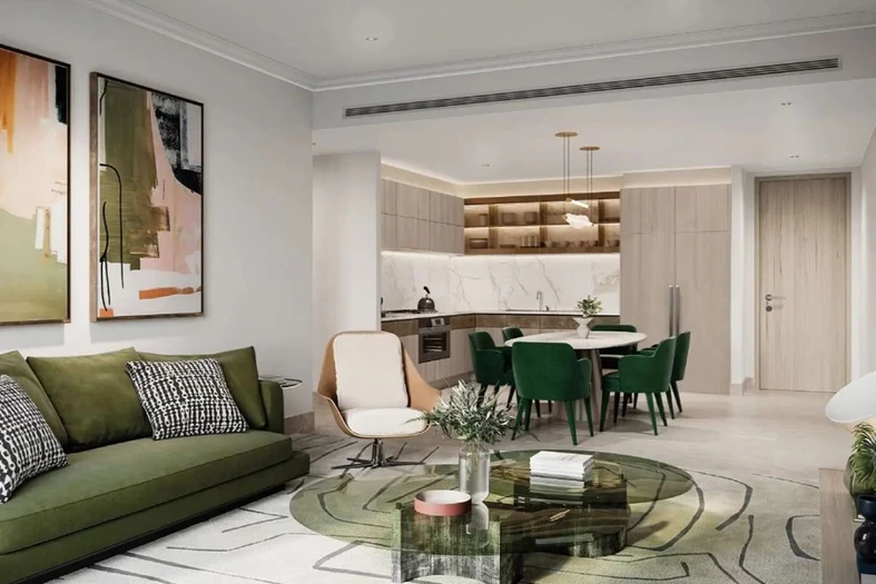 fäm Properties is proud to present this sophisticated three-bedroom lateral residence, located in the heart of Downtown Business Bay — a prime location for those who appreciate seamless connectivity, upscale living, and modern design. Located on a high floor, this residence offers breathtaking full Burj Khalifa and Fountain views from every angle.