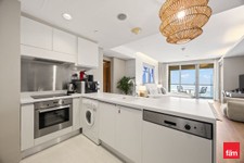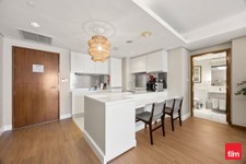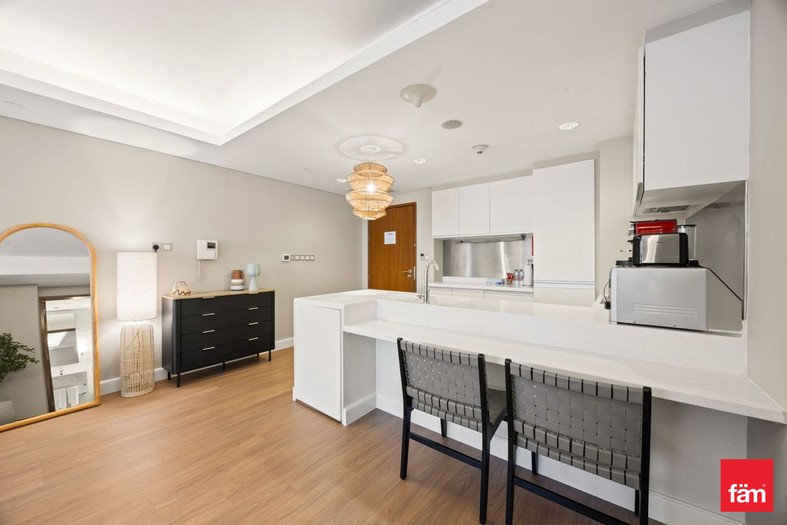 The kitchen is sleek and fully equipped with high-quality built-in appliances, while the bathroom showcases upgraded fittings and elegant detailing.