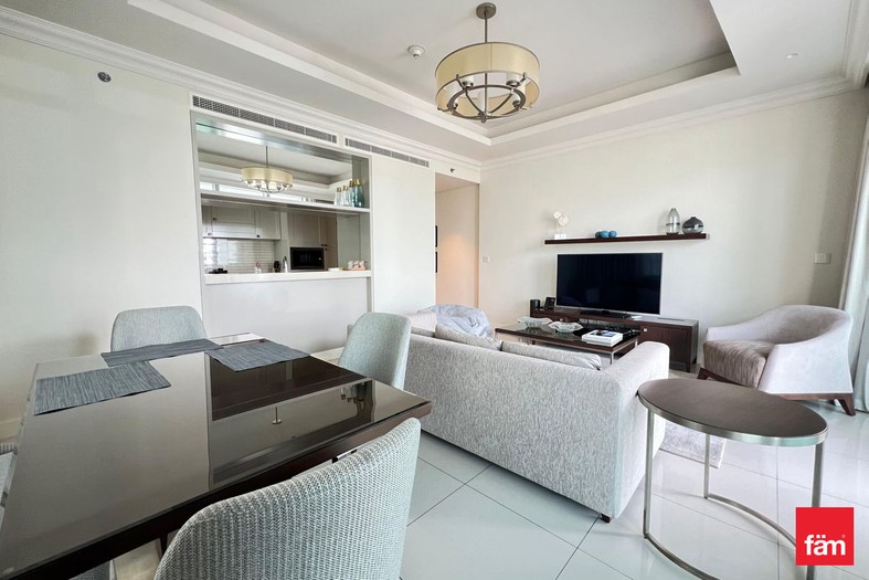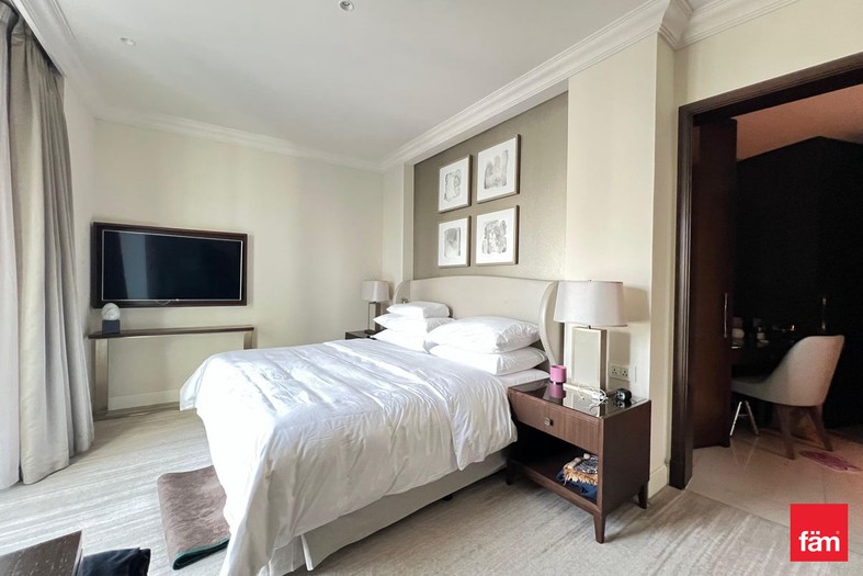Residents benefit from five-star hotel amenities including an infinity pool, state-of-the-art gym, spa facilities, concierge services, valet parking, and direct air-conditioned access to Dubai Mall.