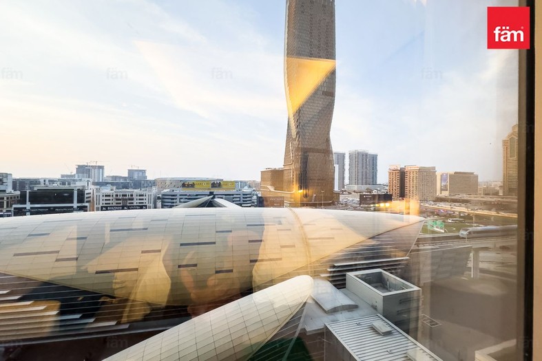 The towers are linked directly to the Dubai Metro and the Dubai Mall via an air-conditioned travelator.