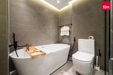 The apartment comes fully furnished and features 2 bathrooms, a study room, and 2 balconies with beautiful community views, along with built-in wardrobes, kitchen appliances. The high floor location offers breathtaking views of the city skyline. The property is upgraded, fitted, and renovated to the highest standards. It is situated seconds to Dubai Opera and Dubai Mall, as well as to the Metro.