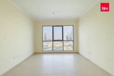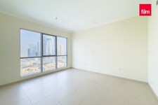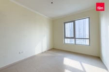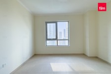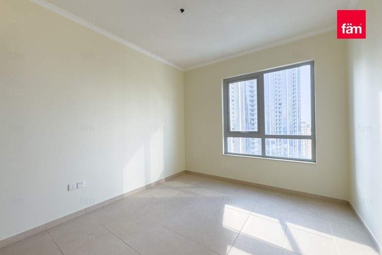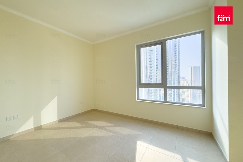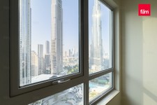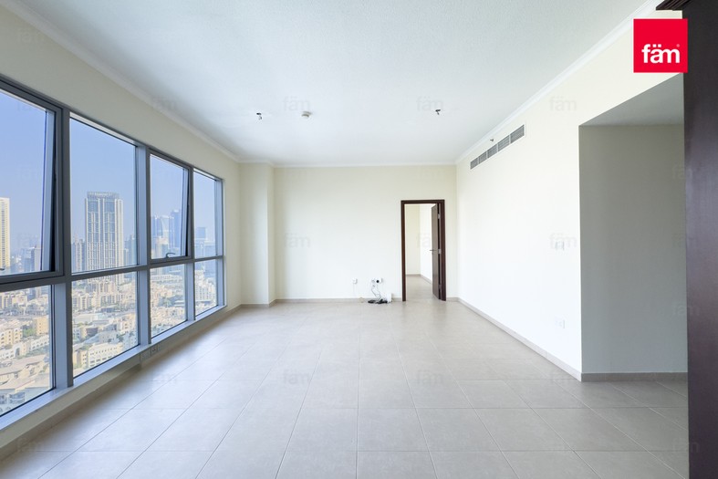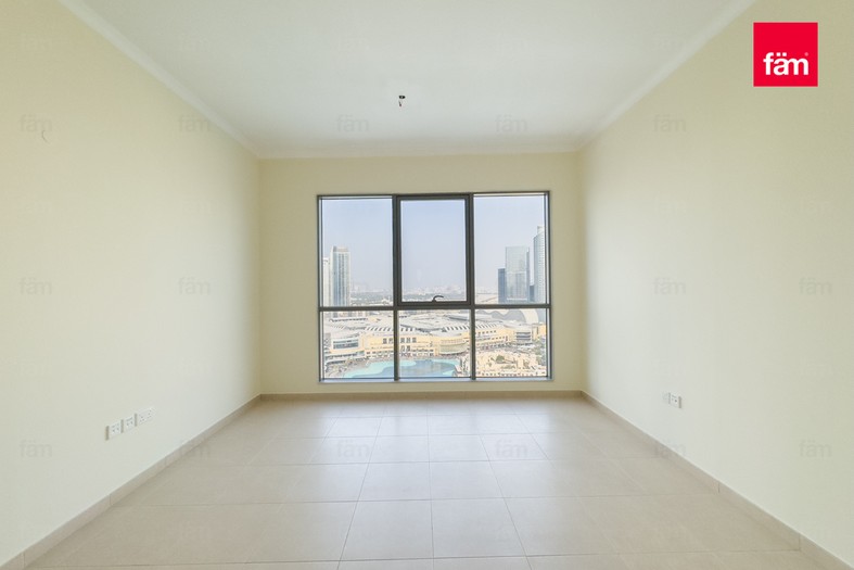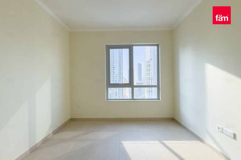 This bright and open apartment features tile flooring, a master bedroom with built-in cabinetry, a walk-in closet, and a marble standing shower. The modern kitchen opens into a generous dining and living area, ideal for entertaining. Floor-to-ceiling bay windows and a balcony provide stunning views of the Burj Khalifa, Dubai Fountain, and Downtown skyline.