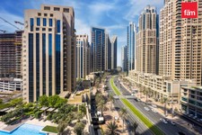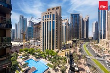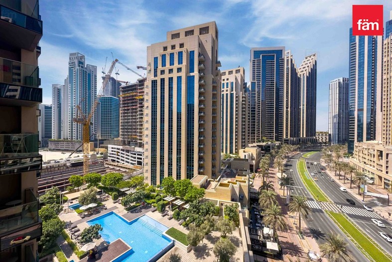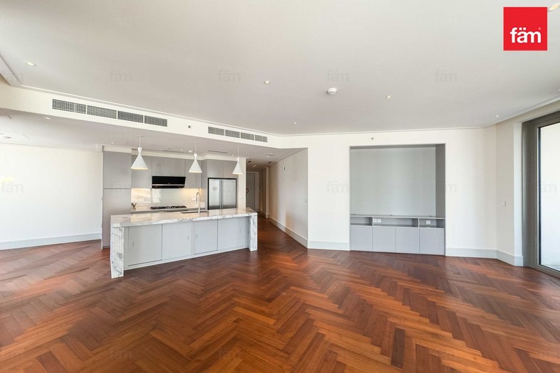 • Bright open-plan layout connecting the kitchen and living area, leading to a private balcony with Dubai skyline views.
